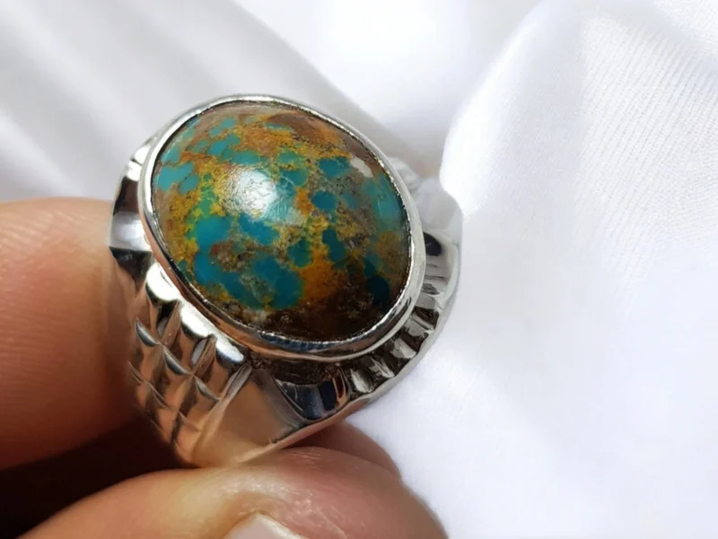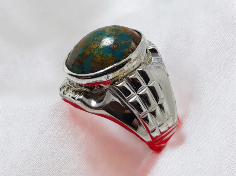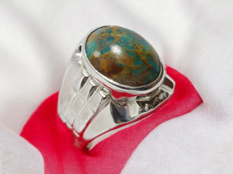 At Ringswear, we elevate men’s style with the captivating Men’s Feroza Ring. This exquisite piece showcases a genuine Feroza gemstone, boasting mesmerizing shades of turquoise, nestled within a band of solid 925 sterling silver.