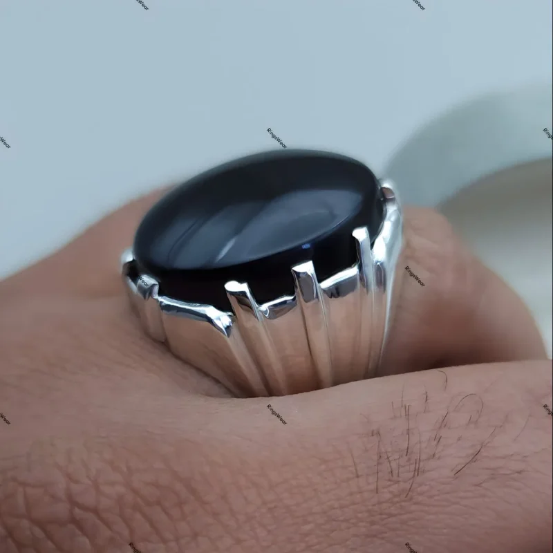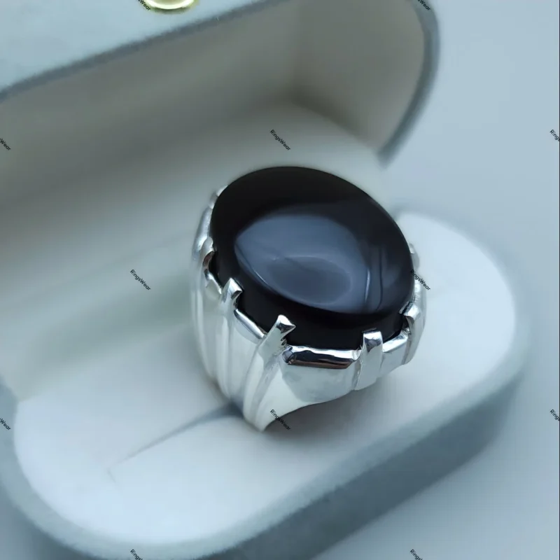 • Genuine Black Yemeni Aqeeq Stone: Sourced directly from Yemen, this gemstone boasts a deep, luxurious black color.