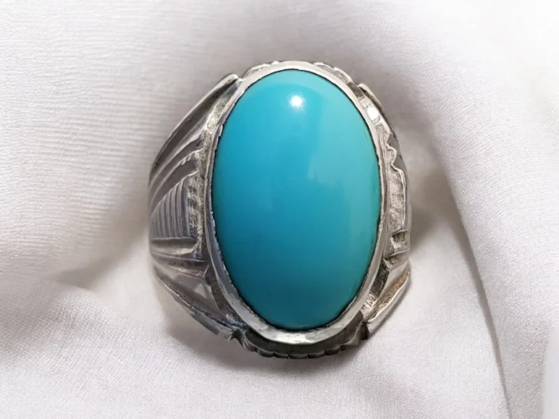 At Ringswear, we elevate men’s style with the captivating Men’s Feroza Ring. This exquisite piece showcases a genuine Feroza gemstone, boasting mesmerizing shades of turquoise, nestled within a band of solid 925 sterling silver.