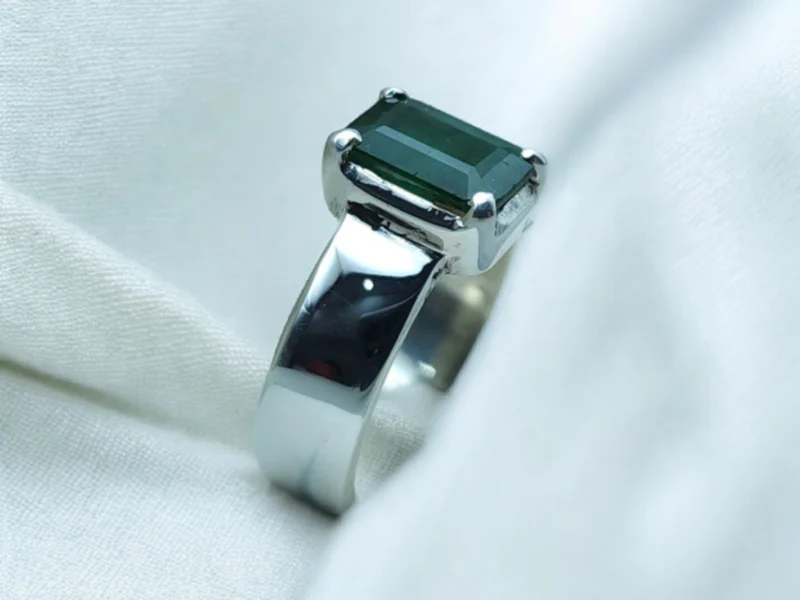 • Masculine sophistication: Bold band complements the mesmerizing deep green emerald.