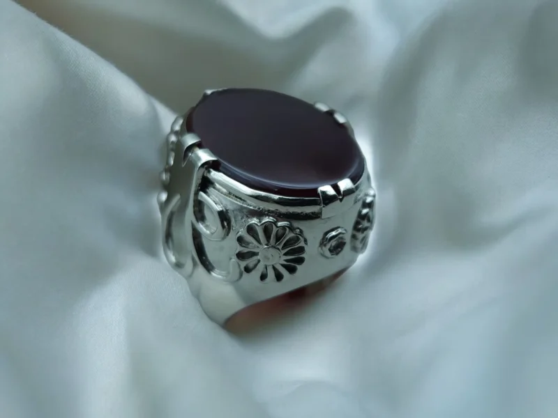 Unveil the captivating beauty of Yemeni aqeeq rings at our store. These cultural treasures showcase genuine agate gemstones, renowned for their deep reddish-brown tones and mesmerizing patterns.