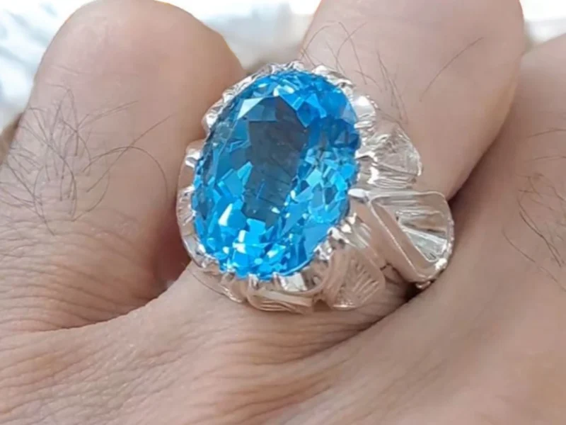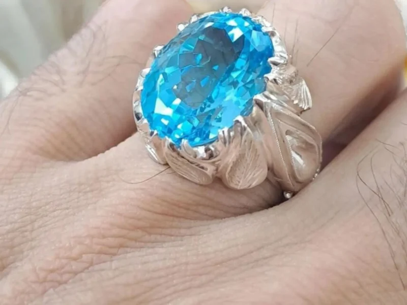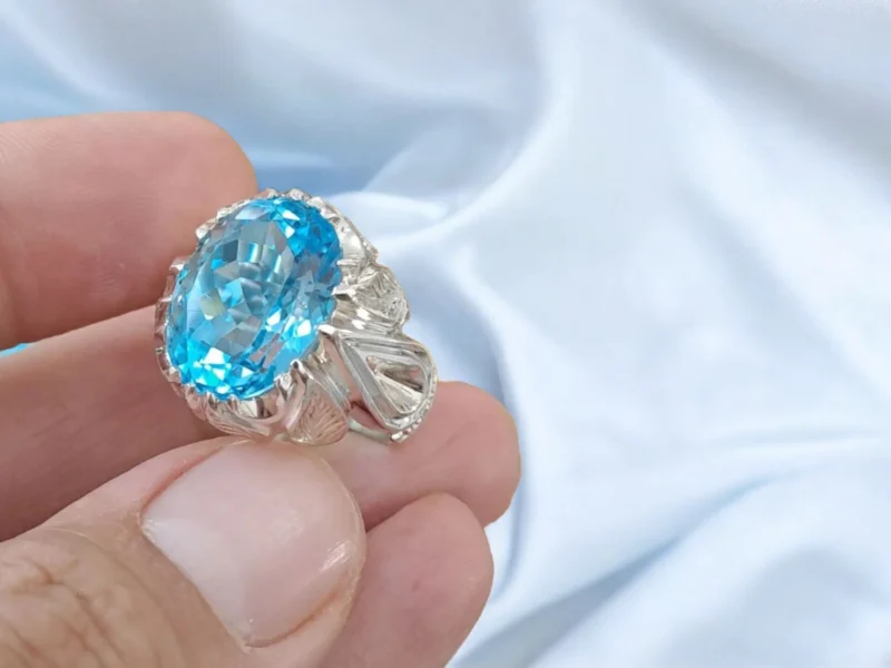 Rare 16 Carat Blue Topaz: Sterling Silver 925 Handmade Ring (Shop Now)