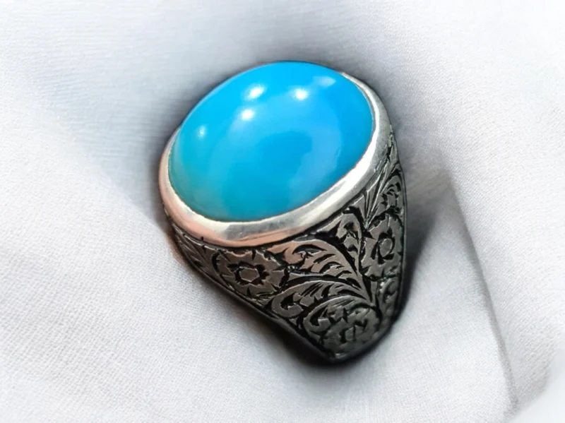 At Ringswear, we elevate men’s style with the captivating Men’s Feroza Ring. This exquisite piece showcases a genuine Feroza gemstone, boasting mesmerizing shades of turquoise, nestled within a band of solid 925 sterling silver.