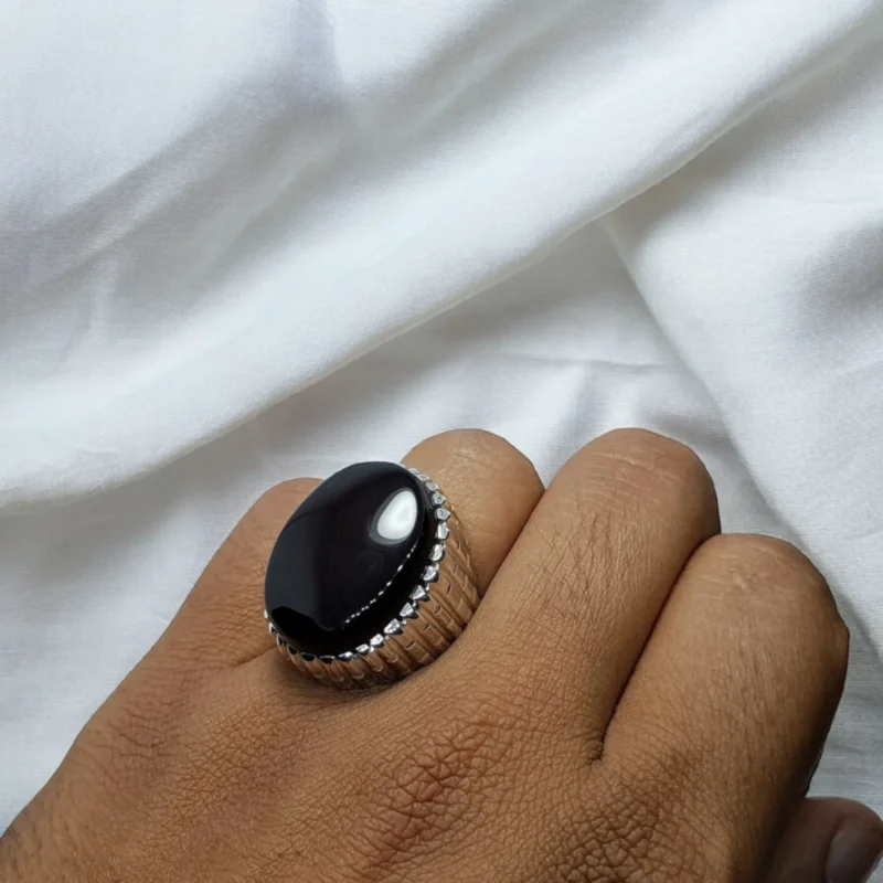 - Genuine Black Yemeni Aqeeq Stone: Sourced directly from Yemen, this gemstone boasts a deep, luxurious black color.