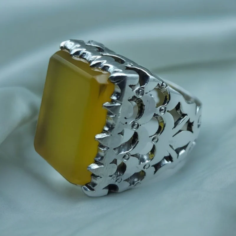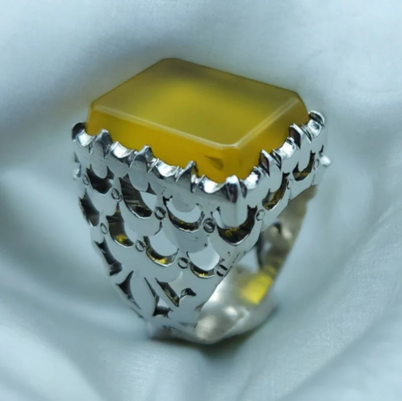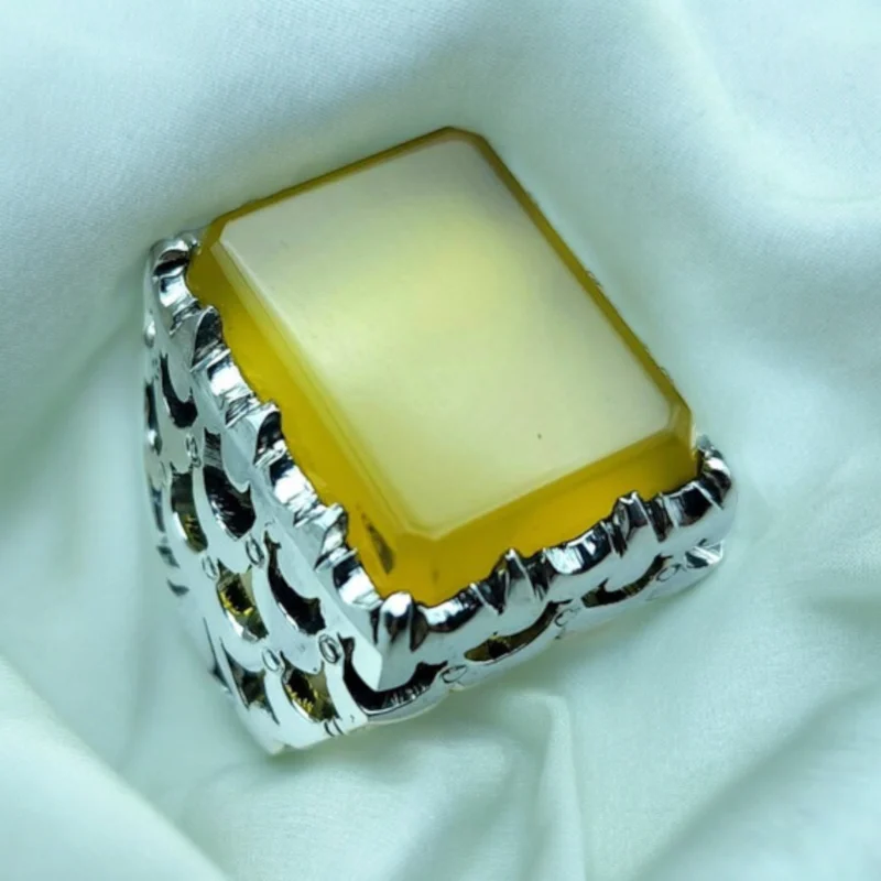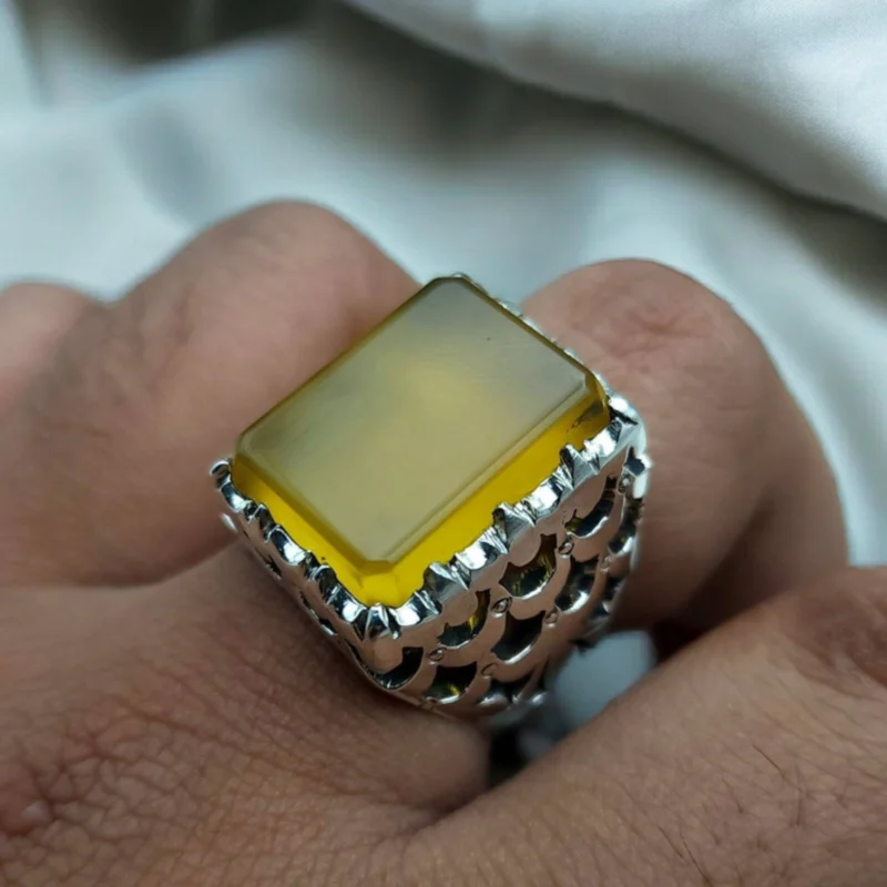 Unique Yellow Yemeni Aqeeq Men’s Ring – Find Your Perfect Match Shop Now!