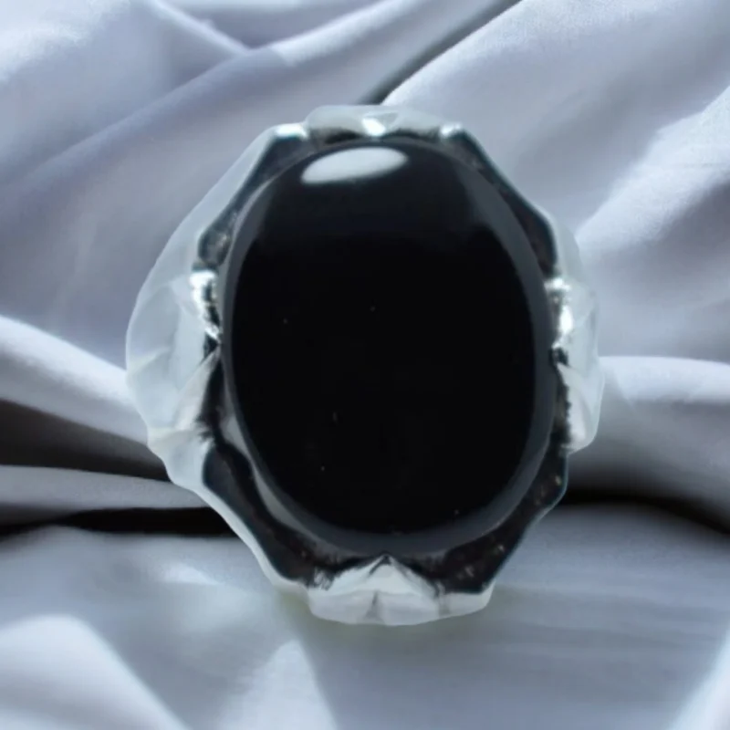 Experience the captivating elegance and rich history of Yemen with our Black Yemeni Aqeeq Ring. This stunning ring features a genuine black agate stone, prized for its beauty and believed to hold powerful properties.